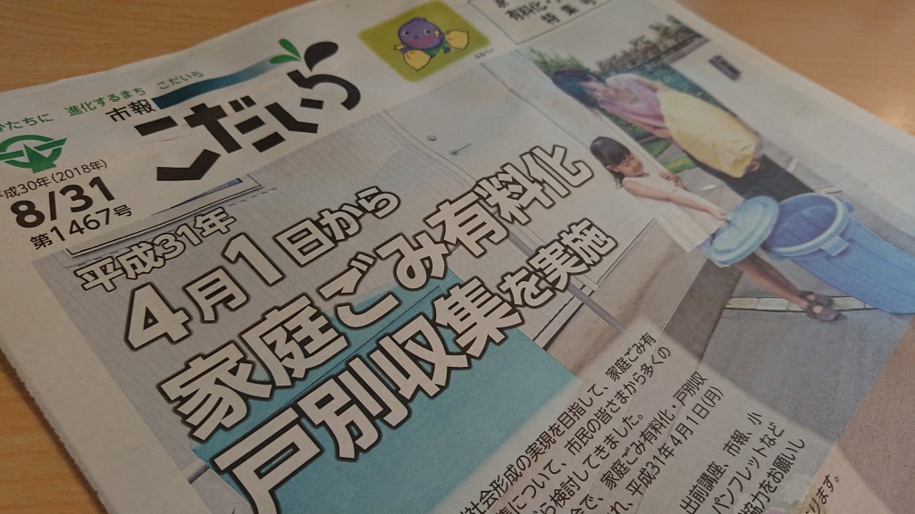 こんにちは、代表の佐藤です。 以前、2017.10.26のブログでもご紹介しましたが、小平市も来年4月よりゴミの戸別回収及び有料化が実施されます。 本日配布されました、8.31発行の市報にて具体的な内容が明示されましたので、その内容の一部をご紹介します... -