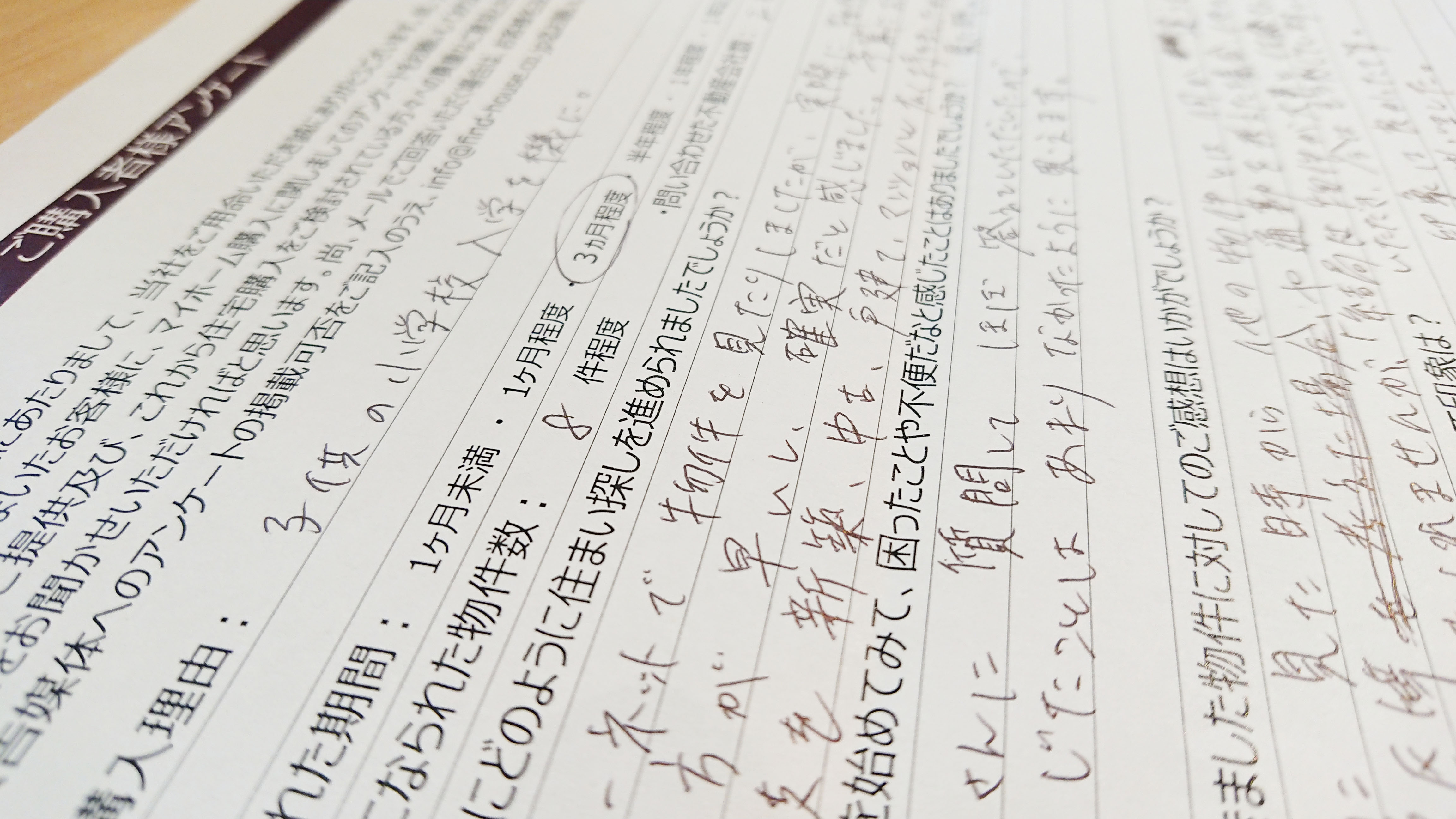 A.以前住宅購入を考えた際、大手の不動産会社へ相談しに行き、急かされたり、希望に合わないところに連れて行かれたりして、住宅購入に対して消極的になっていました。この物件に出会えたのは佐藤さんのお陰です。深くお礼を申し上げます。ありがとうございました。今後もご迷惑をお掛けするかもしれませんが、どうかよろしくお願いいたします。