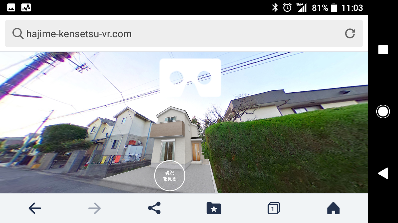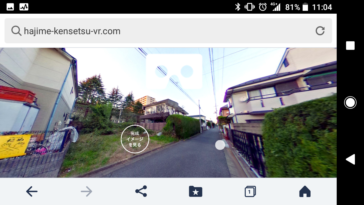 ストリートビューでもお馴染みの、画像をドラッグしながら動かすと、視点が変えられあらゆる方向が見れるようになるという技術に加え、ARの技術を生かし、更地の物件に完成した住宅を仮想的に配置することで、あたかも本当に建っているかのように見えるという技術です。
